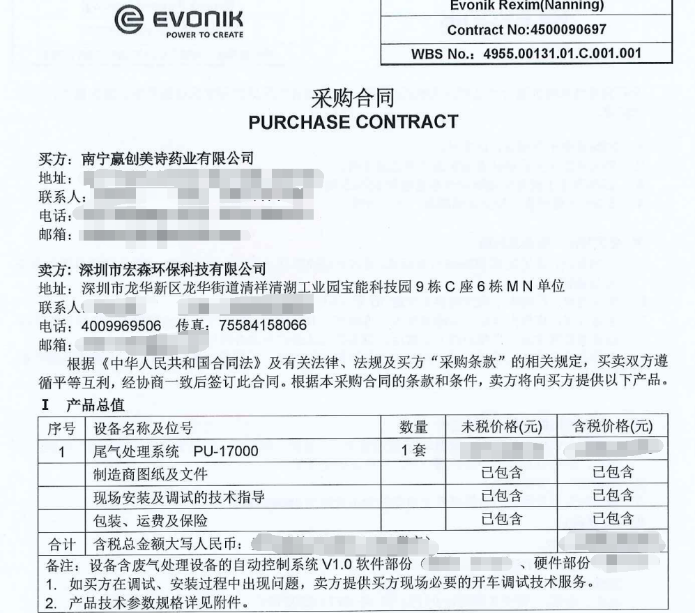 南寧贏創美詩藥業有限公司的廢氣處理設備項目